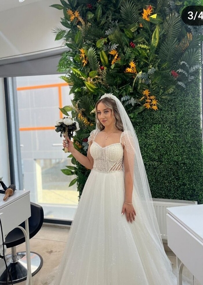 Beden 38 boy 1.60 kilo 57 göğüs 80 arkası fermuarlı herhangi bir lekesi yoktur bir defa giyildi