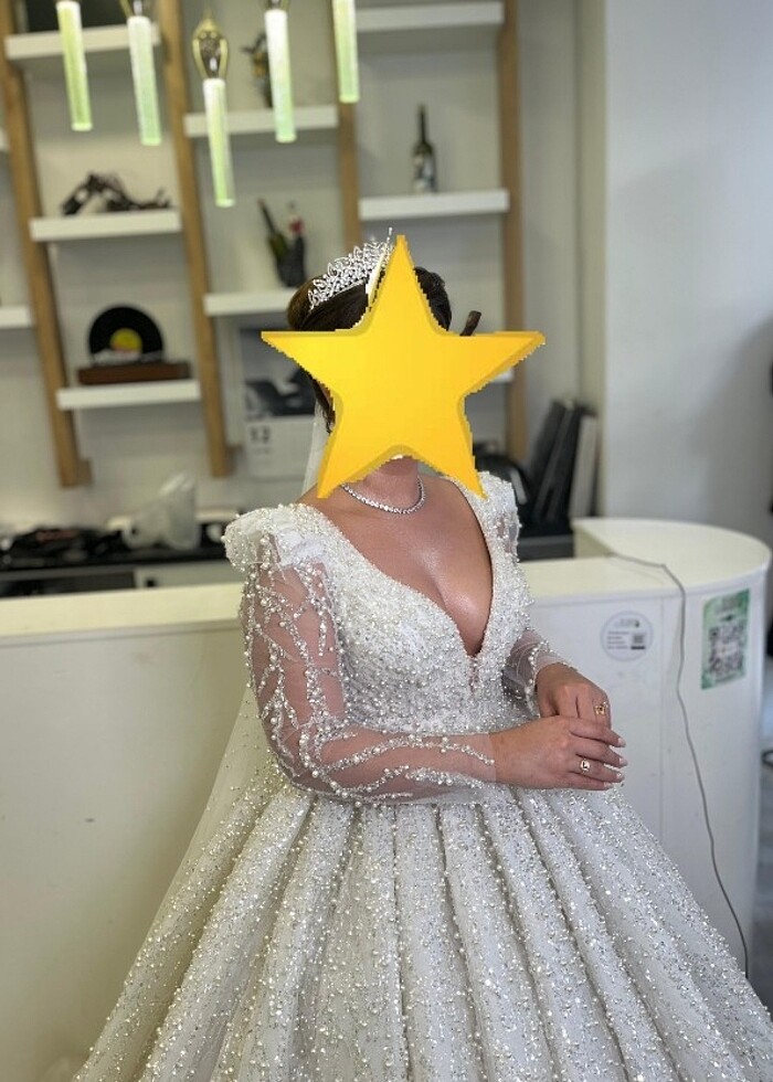 Kaburga model 1 kere giyildi brid bağlama olduğu icin 38-42 beden içerir özel yapıldı. Duvak full inci işlemeli gelinlik ve duvak verilecektir.