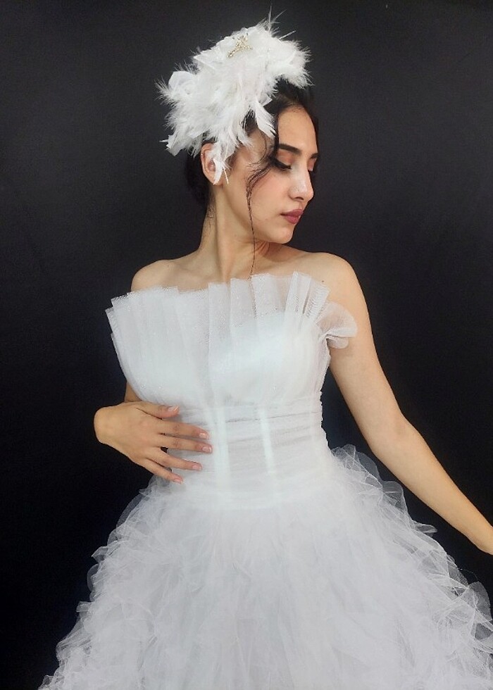 Sıfır gelinlik etek tül farbelalı beden tül pile drape tasarım arka ipli 36 38 bedene uygun