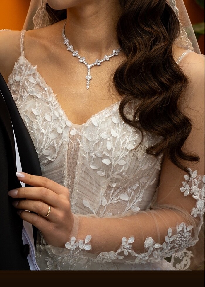 Kollarını ben yaptırdım. Kolları sökülebilir. Arkası ipli geniş bir beden aralığına sahip ben 38 bedenim 168 boy 64 kilo giydim. Düğünümde bir kere giydim. Kuru temizleme yapılmadı. Hafif kuyruğu vardı rahat oynamak adına kuyruğun altındaki sateni kestirdim. Dışarıdan tülünden belli olmuyor. Çok uyguna bırakıyorum maksat iş görsün dolapta çürüyüp giymesin. Alacak olana hayırlı olsun şimdiden