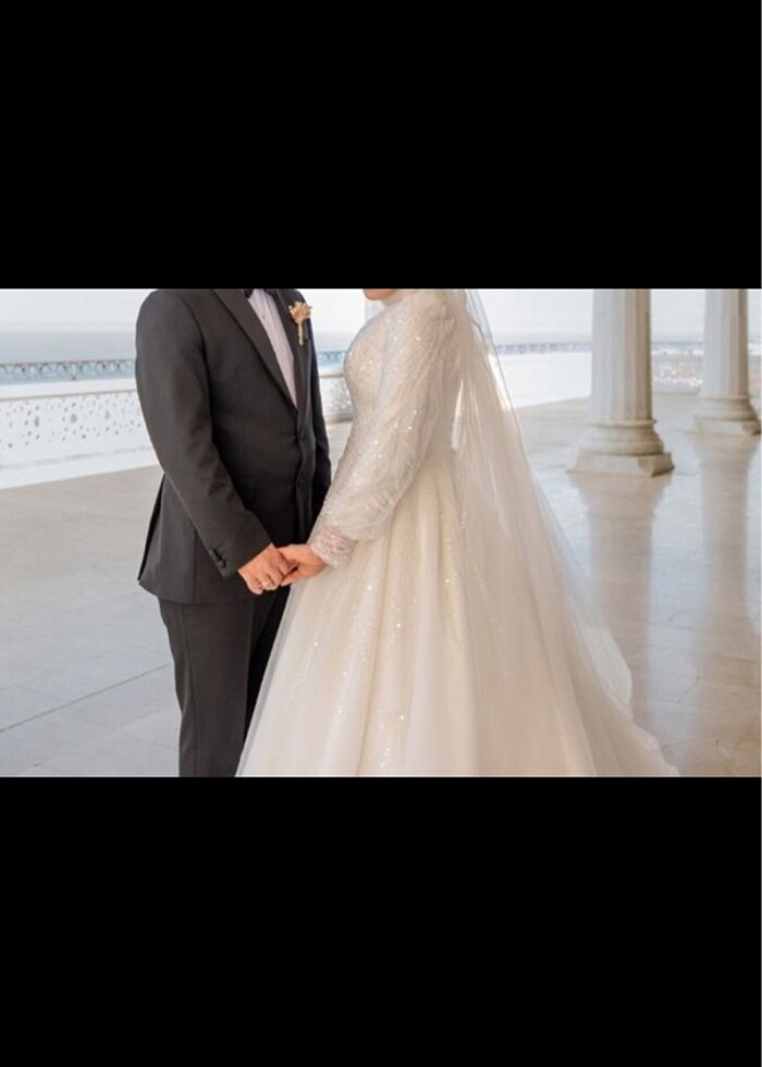 Meryem cicerali Sadece 1 defa giyildi 38-40 beden uyumlu arkası ipli olduğu için rahatlıkla olabilir. Duvak taç çiçek içerinde mevcuttur. Kuru temizleme yapılmamıştır herhangi bi sorunu yoktur.