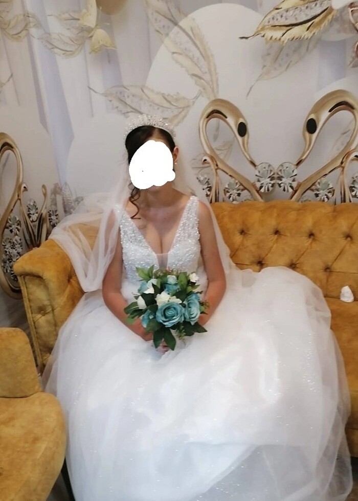 Taç gelinlik ve gelin çiçeği ile birlikte satiyorum