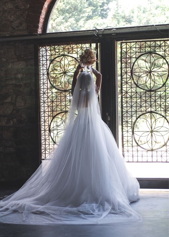 Bir kere giyildi. A kesim çok zarif ve şık aynı zamanda. 38-42 beden arası giyebilir. Arakası iplik olduğu için ayarlanabilir. Bra kısmı B cup. Eteğinde full fransız dantel isterseniz sökebilirsiniz. Kolları da isterseniz çıkartabilirsiniz. Boyum 160, 12 cm topuklu ayakkabı ile giydim. Renk kırık beyaz. Uzun ve kısa duvak ve gelin kesesi verilir.