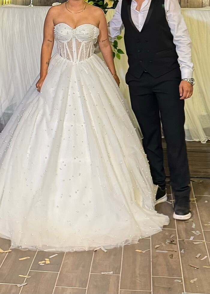 Ürün temizdir Kuru temizlemeye verilmiştir 35 bin E alınıp Özel tasarımdır Kişiye özel incilidir Duvak bu fiyata dahildir 36 beden 75-80 göğüslü kişilere uygundur