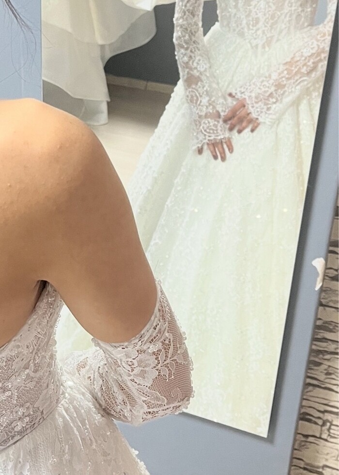 Fransız lez dantelli nakış işlemeli helen gelinlik korsajlı