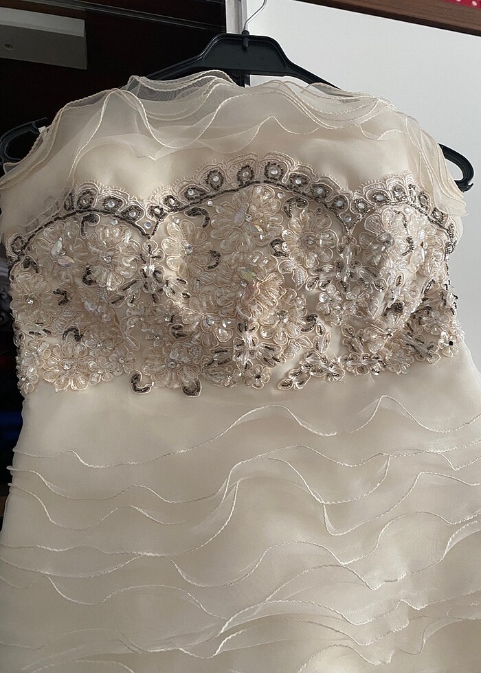 Balık model gelinlik straplez sırtı bağlama ve çiçek detaylı arka etek kısmı hafif kuyruklu çok iyi durumda 1 kere giyildi çok şık ve modern bir tarzı var