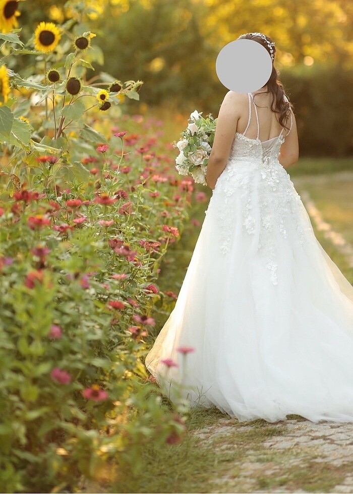 3 boyutlu çiçekler Fransız danteli gelinlik ve 2 duvak 38/40 beden