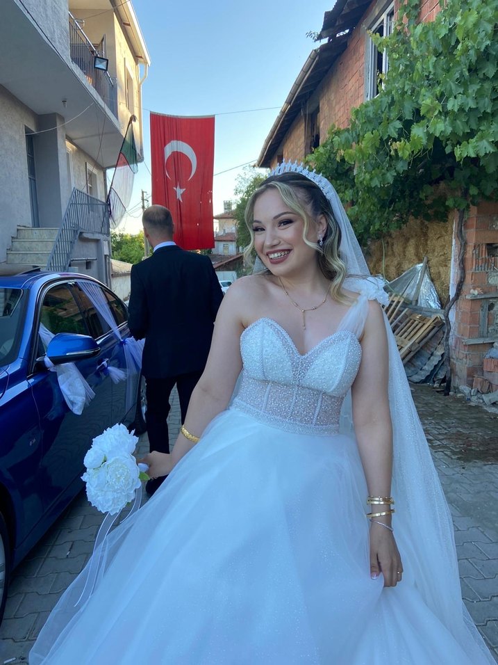 tek kollu gelinlik temiz kullanılmıştır yanında isterseniz duvak,tarlatan, gelin ayakkabısı ve tacı da vardır ayrıca fiyatlandırılır. 36-38 bedendir