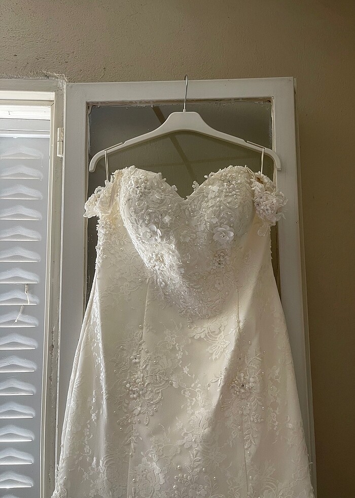 Güncelde gelinlik mağazalarında satışı olan bir modeldir. Alan kişinin sadece kuru temizlemeye göndermesi gereklidir bir deformesi yoktur. Alıcısına şimdiden hayırlı olsun güzel günlerde giysin.