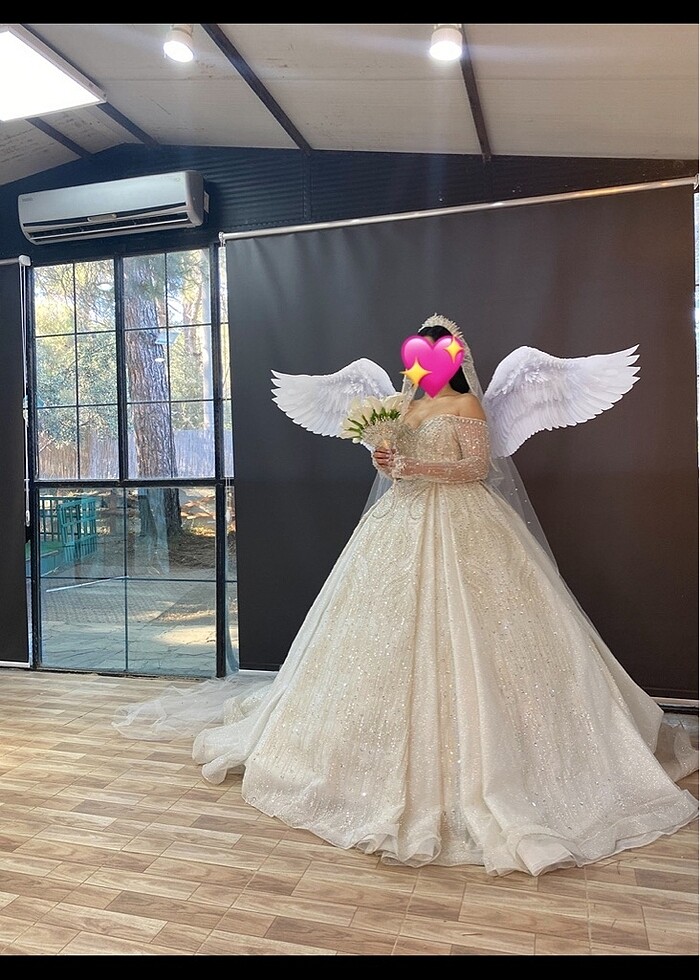 Özel Dikimdir Kendim İstediğim Gibi Yaptırdım Kolay Kolay Bu Modeli Bulamazsınız Çünkü Kendim Bu Şekilde Tasarladım 100 bin tl ye aldım Uygun Fiyata Satıcam 69 Kiloyum 1.70 Boyum Var (Kardeşimin Gelinliğidir)