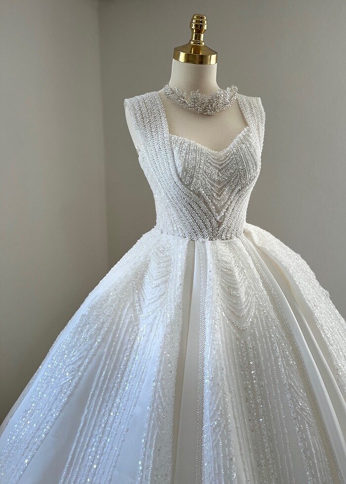 Ürün hiç kullanılmadı sıfır gelinlik çekim için 1 kez denendi 38 36 40 beden duvağı ile birlikte satılık bir tarlatan ile daha kabarık göntü elde edilir