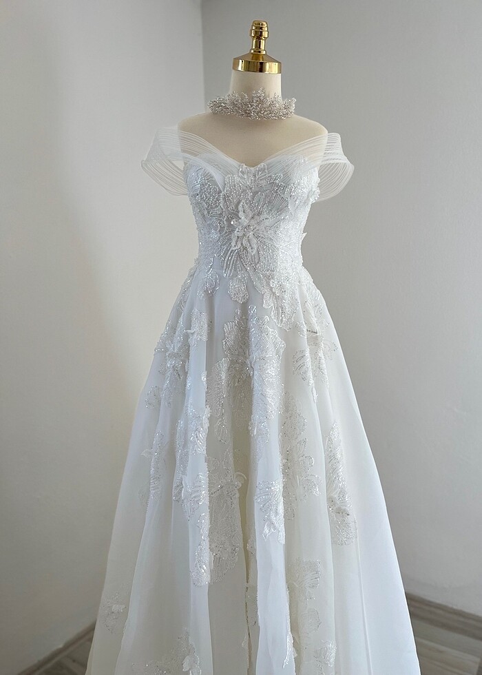 Helen model gelinlik Ürün hiç kullanılmadı sıfır gelinlik çekim için 1 kez denendi 38 36 40 beden duvağı ile birlikte satılık bir tarlatan ile daha kabarık göntü elde edilir