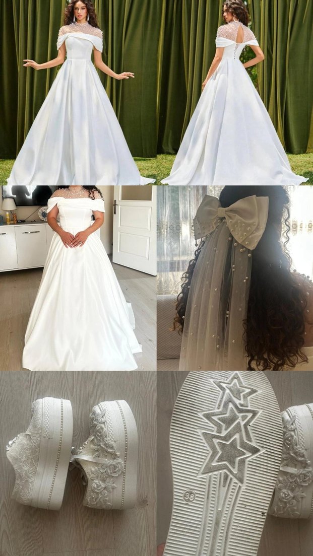 Gelinlik 3 saat düğünde giyildi. Gelinliği Shein uygulaması üzerinden aldık ve tarlatansız gelmişti.Tarlatanı daha sonra kendimiz yaptırdık. Gelinlik,tarlatan, 38 numara gelin ayakkabısı,1 adet fiyonk saç tokası, 1 adet duvak Hepsi 5000₺ den indirildi ..