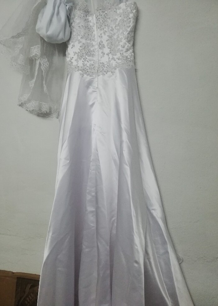 Saten üzerine çiçek desenli, tül desenli. Bu fiyata kaçmaz denecek güzellikte bir gelinlik. 36 beden için uygun tam anlamam ama dosta gider denecek kadar temiz. #gelinlik #acil #gelinler