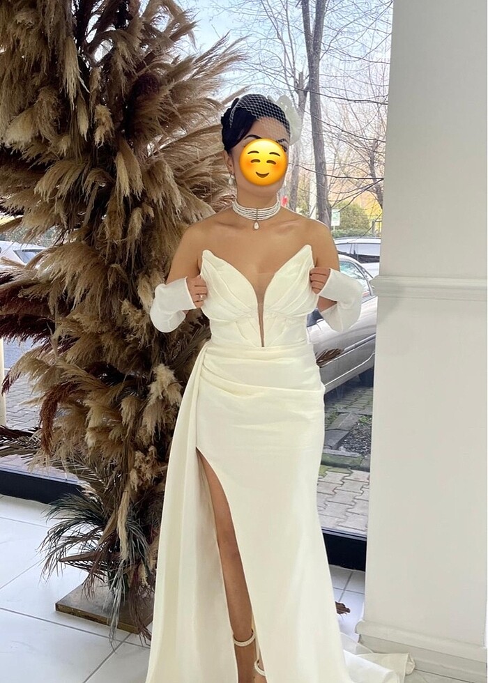 Nikahımda 2 saat giydim kuru temizleme yapıldı 38 beden rengi ise kırık beyaz dekoltesini terziler kapatabiliyor dilerseniz kapattırabilirsiniz.