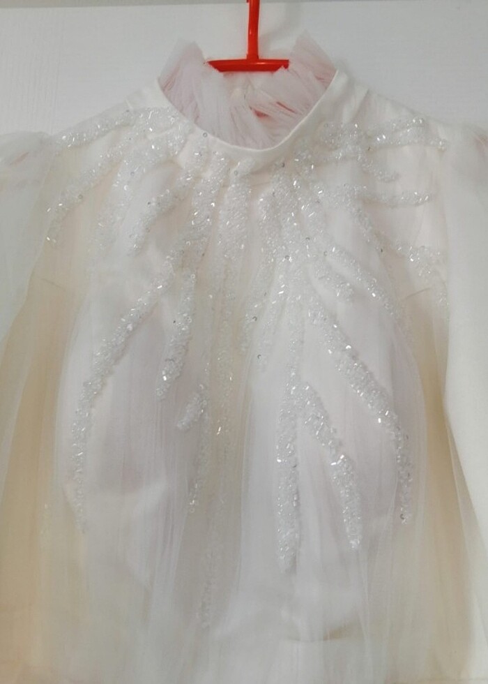 Dış çekimde kullandım. 38 beden ama 40 bedene de rahat olur. Kuru temizlemesi yapıldı. Hazır duvağı ile birlikte verilecektir.
