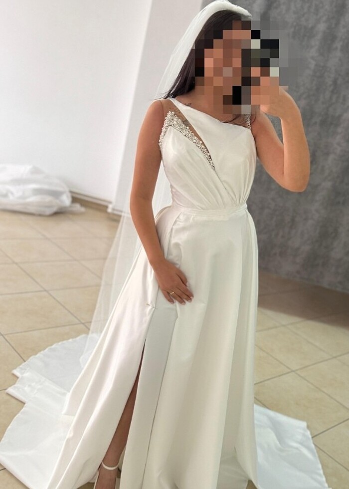 özel dikim saten gelinlik-nikah elbisesi inci detayli 38 beden