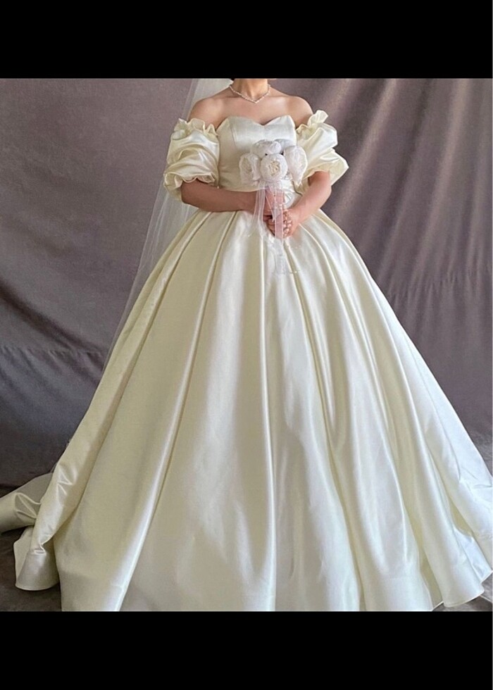Prenses kesim, straplez model, kalp yaka, takıp çıkarabilir kol detaylı, uzun kuyruklu, sırtı ipli bağlamalı gelinlik. Tarlatanı ayarlanabilir isterseniz daha az kabarık tarlatan takılabilir.Renk: Beyaz.Boyum 1.63,kilom 53 .Gelinliğim özel dikim hiç bir yerinde kusur yoktur.Detaylar için iletişime geçebilirsiniz