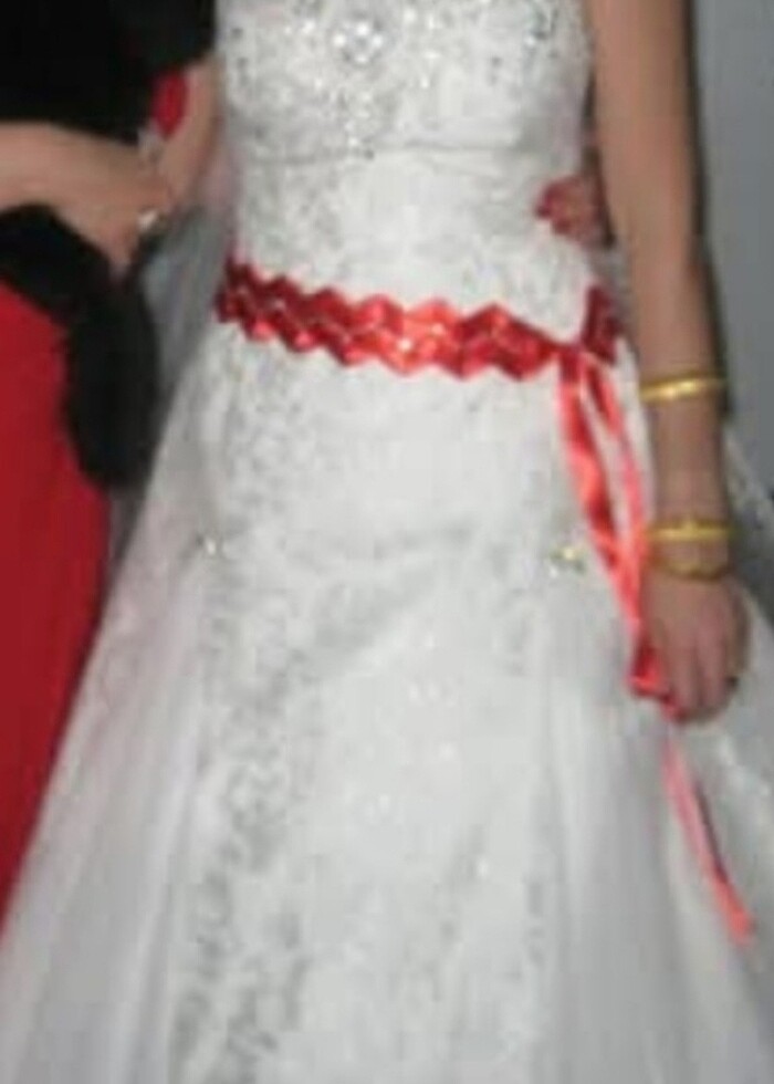 Gelinlik özel dikim m beden, tül savorovski taşlarla bezeli, 1 kez giyildi sandıkta bekleyen ürün hiç bir sorunu yok, temizlemeye vermedim, nasip olan kişi verir, kırmızı bel kuşağı istenirse gönderebilirim