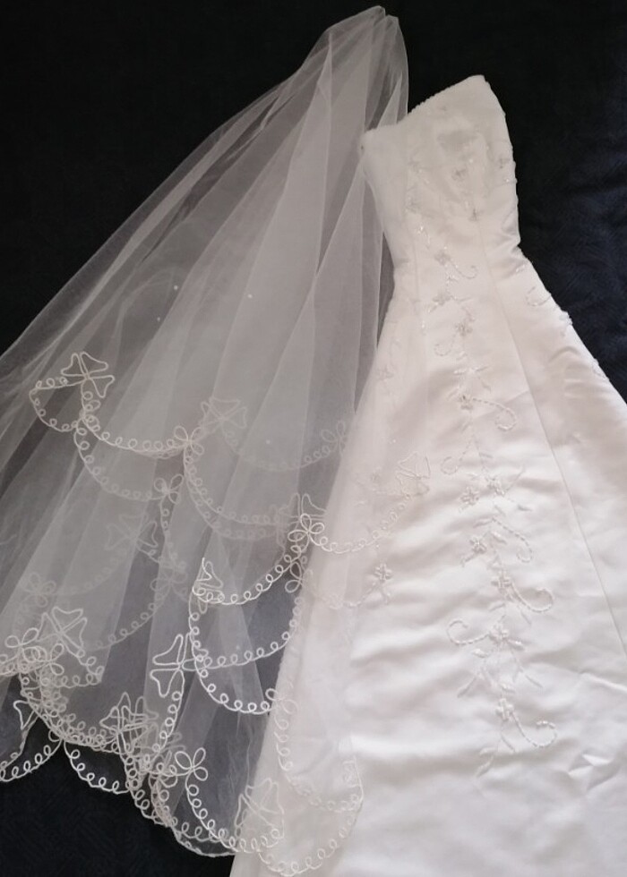 Sırt fermuarı atmış. Güzel bir ütü ve küçük dokunuşlarla mükemmel hale gelir. Tarlatanı da mevcut. Ölçüleri; boy 140 cm, arkada kuyruğu +27 cm, bel 64 cm göğüs 75 cm.