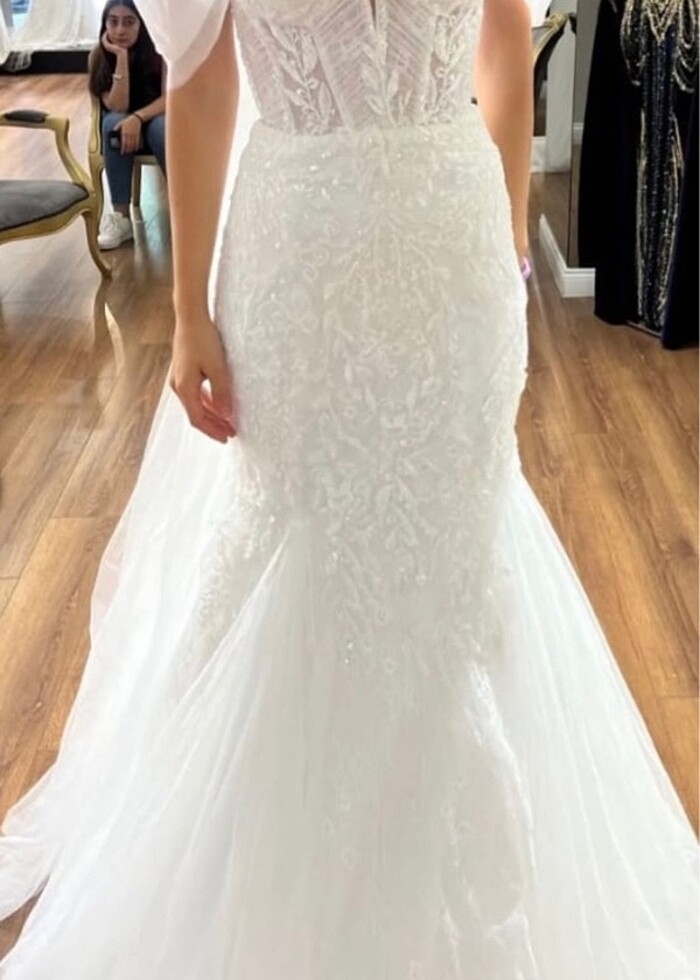 Düğün yapılamadığı için hiç giyilemedi. Tadilat yok. Etiketi üstünde. 36 Beden. Balon kolları tül, onlar da dahil. Ankara Aysira mağazasından alındı. Bir kısa duvağı var. İstenirse eklenir. Gelinlik Ankara’da.