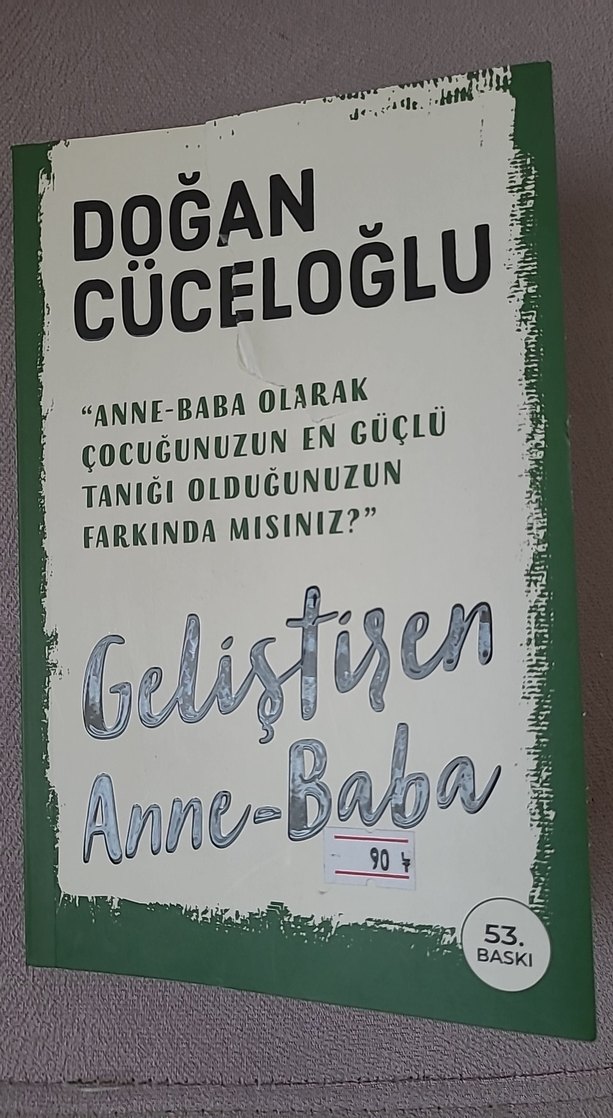 Doğan Cüceloğlu'nun 53. baskı kişisel gelişim kitabı 'Geliştiren Anne-Baba', ebeveynlerin çocuk gelişimindeki etkisini anlatıyor. sadece kapağı yırtık idi. bant ile tamir ettim