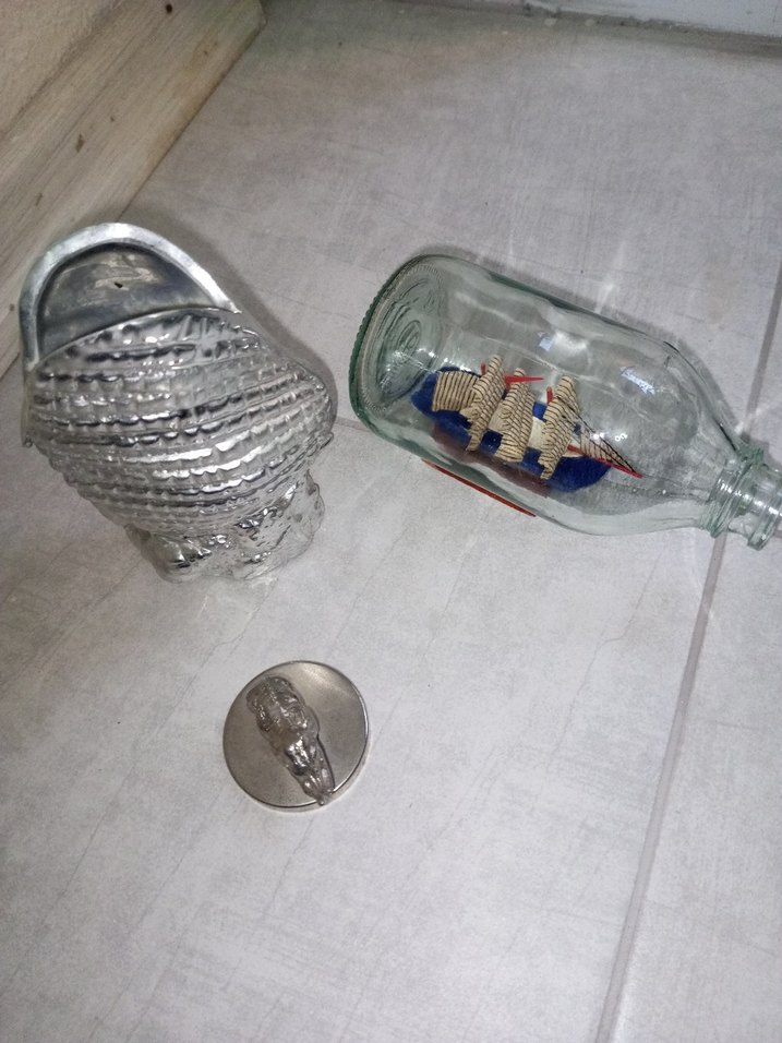 Gemi Figürlü Cam Şişe ve Metal Kapak ofis dekor parçaları