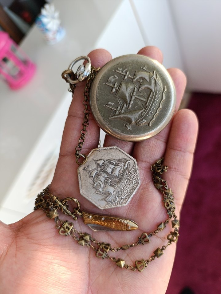 Özellikle deniz aşığı kolleksiyonerler kaçırmasın. 50 mm çapın tam takım antika hatasız oldukça değerli bir köstekli saat. çalışması kondisyonu mükemmel. köstek zincirindeki madalyon mıknatıs çekmiyor yüksek ihtimal gümüş. özel balık şeklinde ki mini çakısı harika. tam takım halinde gönderilecektir. kesinlikle iade garantilidir. detaylı videoyu inceleyin.
