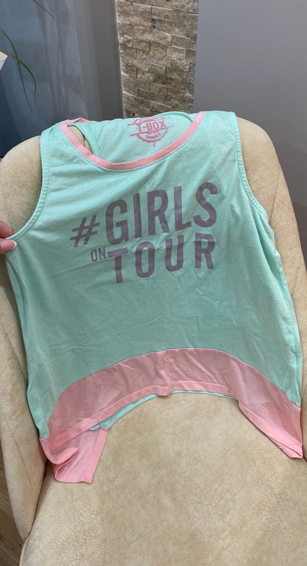 Kolsuz, dar kesim, bisiklet yaka pamuklu tişört, pastel renklerde "#GIRLS ON TOUR" baskılı, detaylı, trend sokak stili için uygun.