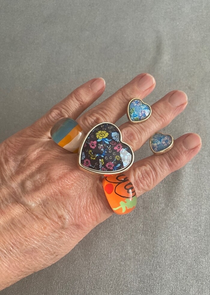 3 yüzük 10 adet ince metal bileklik Bir çift mavi kalpli küpe Hepsi birden satılık