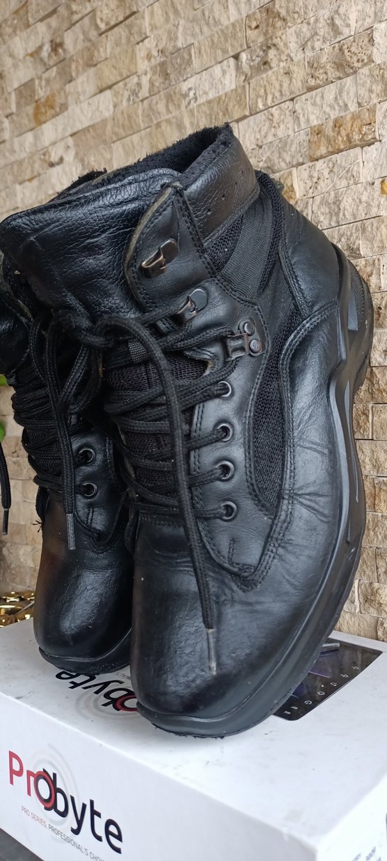 Tokalı detaylara sahip siyah deri erkek botları, sokak stiline uygun. Koyu renk ve desensiz yapısıyla günlük kullanıma uygundur. Gerçek deridir az ve temiz kullanılmıştır