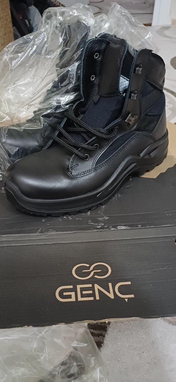 GENÇ markalı, siyah kamuflaj desenli, bağcıklı ve kauçuk malzemeden yapılmış erkek botu, dış mekan ve sokak stili için uygundur. deri sıfır 41 numara