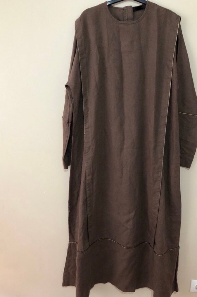 Kumaş Keten yarasa kol yan şerit ve minik taş detay spor keten elbise Namazlık çekme yapmaz bedenler 42.44 vardır Göğüs 112 cm Kolboyu 60 Boy 140