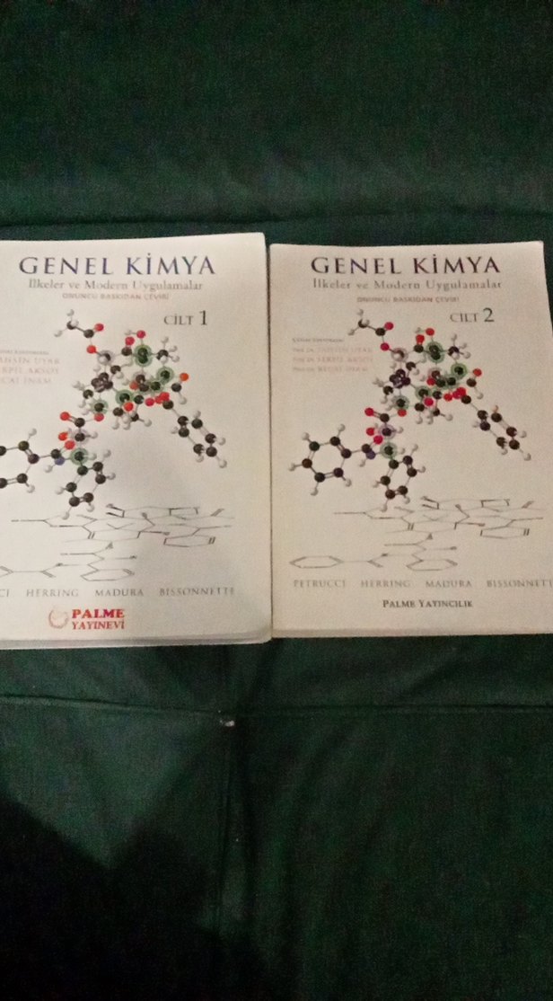 Genel Kimya'nın ilk iki cildi, ilkeler ve modern uygulamalar konularını içermekte olup Palme Yayınları tarafından yayımlanmıştır.hic bir sorunu yoktur sadece bir iki sayfasında çizik var