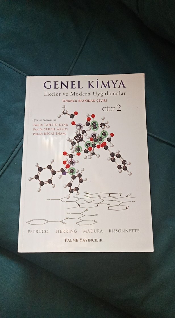 Genel Kimya Cilt 2, kimyanın ilkeleri ve modern uygulamalarını içerir. Onuncu baskı, detaylı moleküler yapılarla çevrilmiştir. kurşun kalemle küçük çizikler var bir kaç sayfada sadece