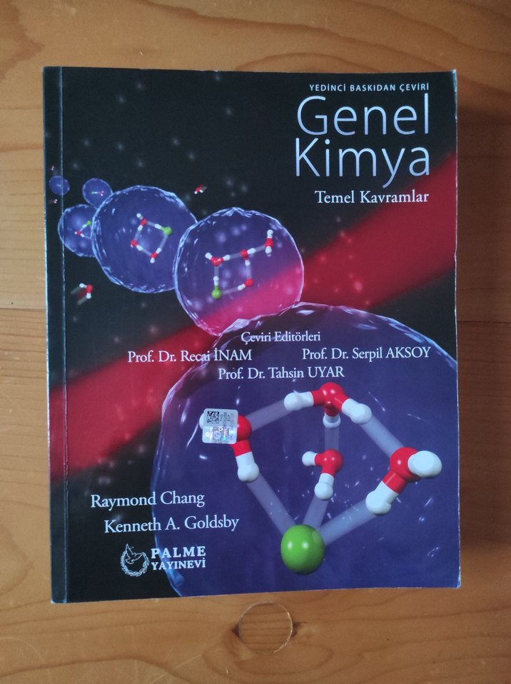 Üniversite düzeyinde genel kimyanın temel kavramlarını içeren, uzmanlarca çevrilip düzenlenmiş ders kitabı. Palme Yayınevi tarafından yayımlandı. Yalnızca 6 sayfasında yazılar vardır.