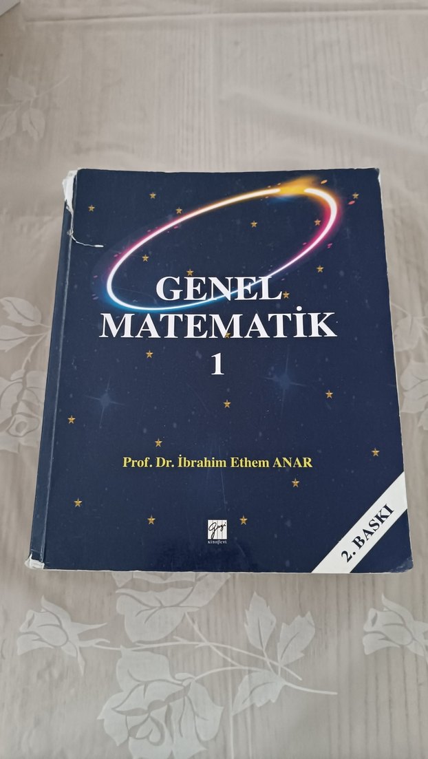 Prof. Dr. İbrahim Ethem Anar'ın yazdığı, temel matematik konularını içeren 2. baskı Genel Matematik 1 kitabı. Kapağı koyu mavi ve yıldız desenlidir.