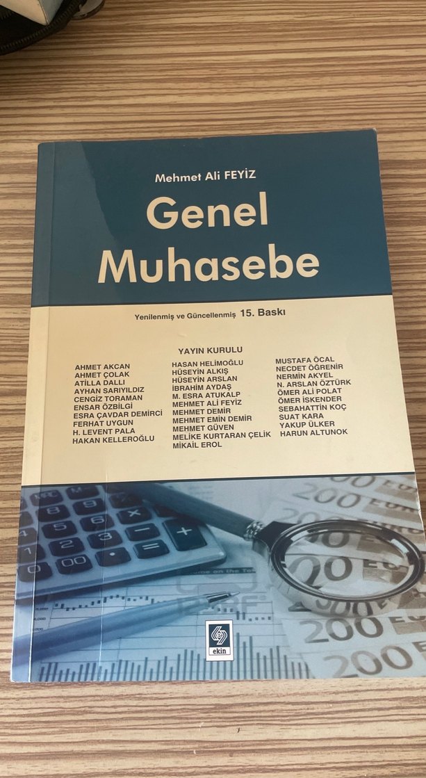 Mehmet Ali Feyiz'in Genel Muhasebe kitabı, temel muhasebe prensiplerini kapsayan ve 15. baskısı güncellenmiş kapsamlı bir kaynaktır. Sadece gösterdigim ilk sayfa çizili haricinde tertemiz herhangi eksik yırtık sayfası yoktur arkasındaki testler bile çözülü değil hiç kullanmadım diyebilirim