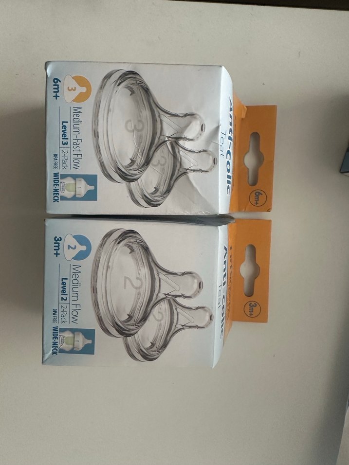 3 ay ve 6 ay+ bebekler için geniş ağızlı, orta ve orta hızlı akışlı biberon emziği seti. Dr Browns anticolic geniş ağız biberon ike uyumlu 3+ ay ve 6+ ay biberon emzikleri. Hiç kullanılmadı. İkili olarak verilecektir.
