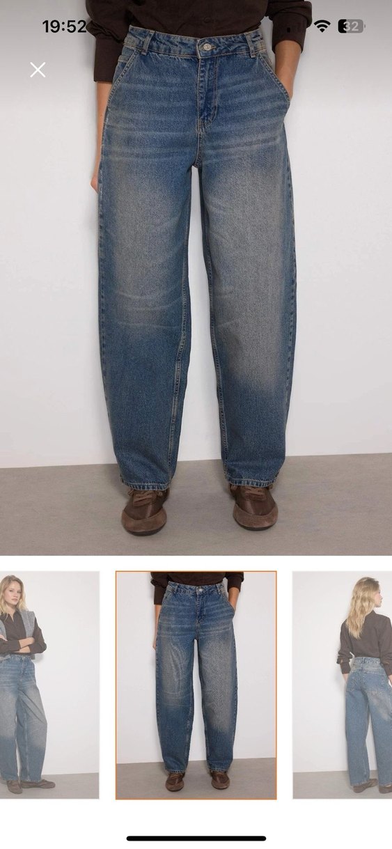 Geniş kesim,, denim kumaştan kadın jean. Gri-bej renk, günlük kullanıma uygun, desen içermeyen rahat ve şık bir modeldir. S ve XS mevcut ilan açtırınız