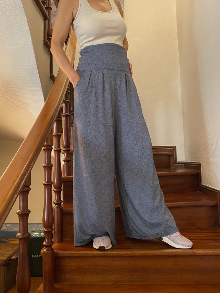 Geniş kesim, yüksek bel ve yan cepli, çizgili, pamuklu pantolon. Çok çok rahat ve günlük kullanıma ve özellikle uzun yolculuklarda mükemmel. Normcore tarzıyla uyumlu. Yeşil bikini hediyedir. Kızım bikininin tüm etiketlerini kestiği için hediye olarak göndereceğim.