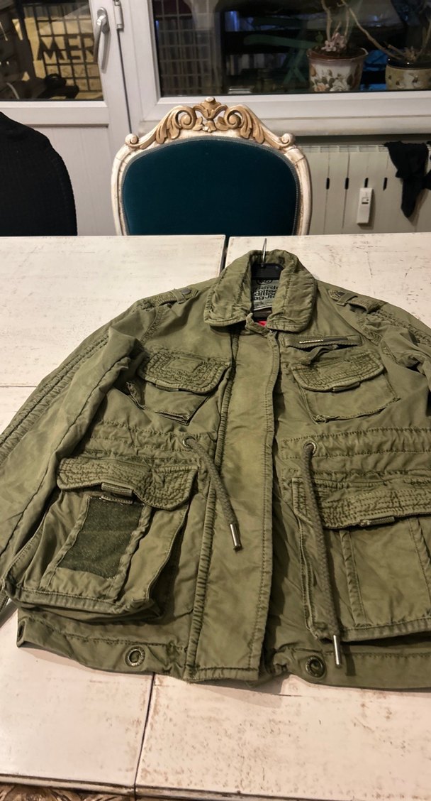 Keten kumaştan yapılmış, geniş kesimli, kamuflaj desenli erkek ceket. Notched lapel yaka, uzun kollu ve fermuarlı. Çoklu ceplerle günlük sokak stili için uygun.