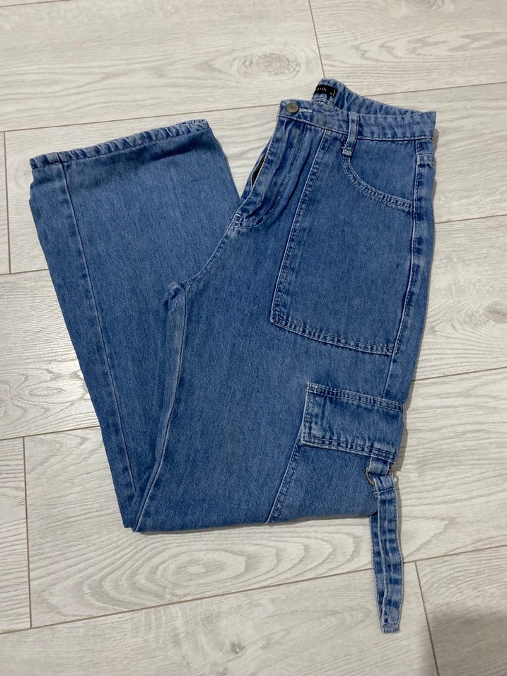 Geniş Kesim Kemerli Mavi Kot Pantolon
