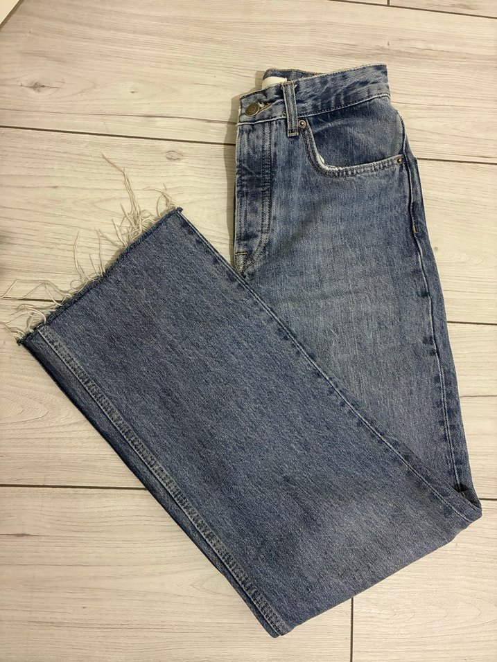 Geniş kesim midi pantolon, ham kenar detaylı. Günlük kullanıma uygun, rahat ve şık görünümlü.