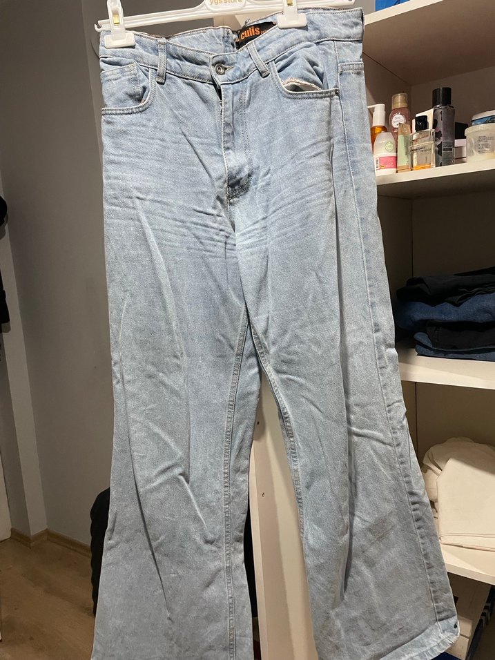 Geniş Kesim Midi Boy Mavi Kot Pantolon