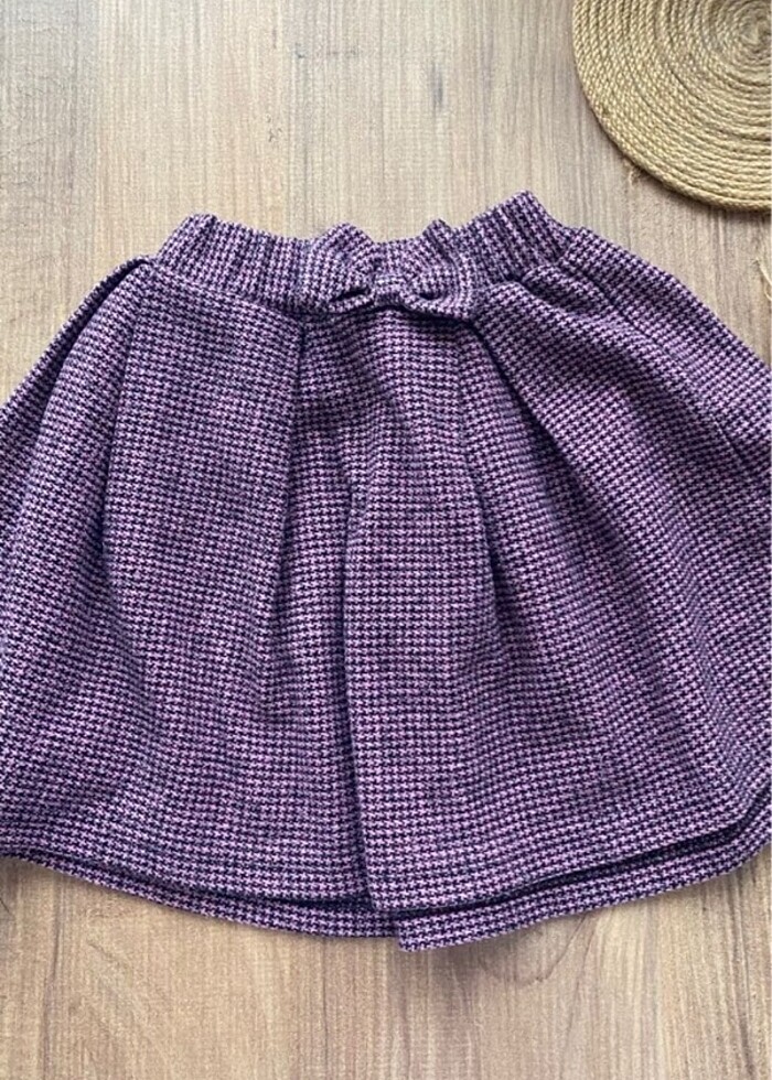 Önü fiyonklu beli lastikli kış sezonuna uygun kız çocuk etek