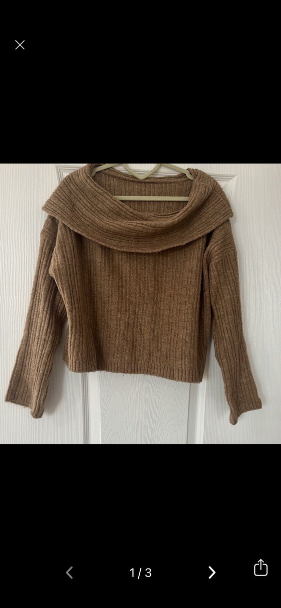 Geniş Yaka Kahverengi Örgü Kadın Kazak