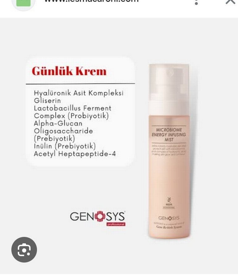 GENOSYS günlük toner, hyalüronik asit kompleksi, gliserin, probiyotik ve prebiyotikler içerir, cildi nemlendirir ve dengeler.