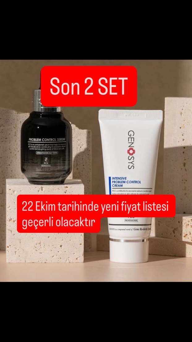 GENOSYS sivilce cilt bakım seti, problem kontrol serumu ve yoğun problem kontrol kremi içerir. Sadece 2 set kaldı. Yeni liste fiyatı 6300₺ olacaktır