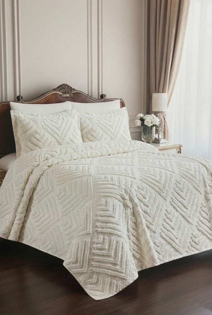 Geometrik Desenli Kabartmalı Modern Çift Kişilik Pike Takımı